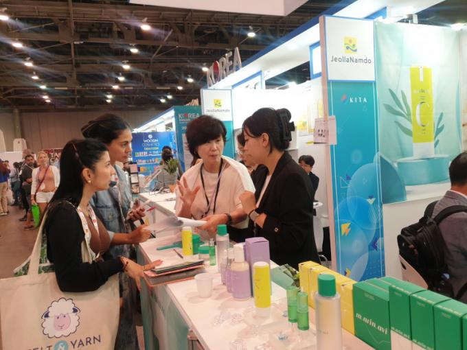 Àü³²¿¡¼± õ¿¬ ¿°»ö, ÈÀåǰ, ºñµ¥ µî 6°³ ±â¾÷ Á¦Ç°ÀÌ Àü½ÃµÆ°í, ÇöÀåÀ» ãÀº ¹æ¹®°´µé·ÎºÎÅÍ Å« °ü½ÉÀ» ¹Þ¾Ò´Ù.
