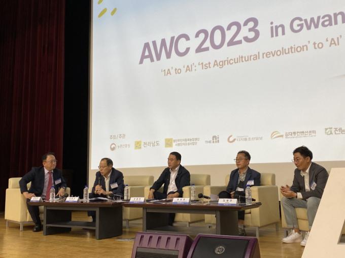 31ÀÏ ¿¸° ¡®2023 ÀΰøÁö´É ³ó¾÷±â¼ú ±¹Á¦¼¼¹Ì³ª(AWC¡¤AI World Congress)¡¯¿¡¼´Â ¼¿ï´ëÇб³ ±èÇÐÁø ±³¼ö¸¦ ÁÂÀåÀ¸·Î Àü³²µµ °È¿¼® ³óÃà»ê½Äǰ±¹Àå, ³óÃÌÁøÈïû Á¶¿ëºó ºÎÀå, ³ó¾îÃ̰ø»ç ¼Û¼ºÈ£ ¼ÒÀå µîÀÌ Âü¿©ÇÑ 1Â÷ »ê¾÷Çõ¸í¿¡¼ ÀΰøÁö´ÉÀ¸·Î(1st Agricultural revolution to AI)ÁÖÁ¦ Åä·ÐÀÌ ÁøÇàµÆ´Ù.