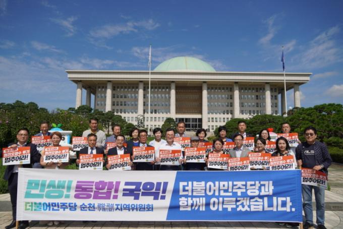 ÀÌ ´ëÇ¥´Â¡°¸Õ °÷¿¡¼ ¿À¼Ì´Ù, Èû³»°Ú´Ù¡±¶ó°í ¹Ý±â¸ç °¨»ç¸¦ ÀüÇß°í¡°¾ÆÁ÷µµ ¸ÖÂÄÇÕ´Ï´Ù¡±°ÇÑ ÀÇÁö¸¦ ³»º¸ÀÌ¸ç ¹æ¹®´Ü°ú ±â³ä ÃÔ¿µÀ» ¸¶Ä£ ÈÄ¿¡´Â¡°¼øÃµ ÈÀÌÆÃ¡±À̶ó°í ¿ÜÄ¡¸ç ¿ÀÈ÷·Á ¹æ¹®´ÜÀ» °Ý·ÁÇϱ⵵ ÇÏ¿´´Ù. À̾î ÀÌ ´ëÇ¥´Â ¼øÃµ ¹ÎÁÖ´ç¿¡ °¢º°ÇÑ °í¸¶¿òÀ» Ç¥½ÃÇÏ¸ç ¡°µ¶Àç ±Ç·ÂÀÇ ÅëÄ¡´Â ¾ðÁ¦³ª »ý°¢ÀÌ ´Ù¸£´Ù´Â ÀÌÀ¯·Î »ó´ë¸¦ ¾Ç¸¶ÈÇÏ´Â °Í¿¡¼ ½ÃÀÛÇß´Ù¡±°í À±¼®¿ Á¤ºÎ¿Í ¿©´çÀ» ºñÆÇÇß´Ù.