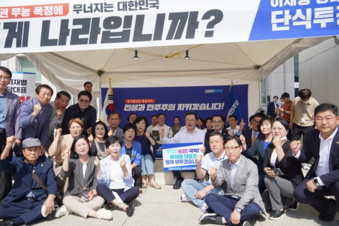 ³ó¼ºÀåÀ» ¹æ¹®ÇÑ Á÷ÈÄ ¹æ¹®´ÜÀº ±¹È¸ ÀÇ»ç´ç ¾Õ¿¡¼¡®¹Î»ý! ÅëÇÕ! ±¹ÀÍ! ÀÌÀç¸í ´ëÇ¥¿Í ÇÔ²² ÇϰڽÀ´Ï´Ù¡¯,¡®ÈÄÄí½Ã¸¶ ¿øÀü¿À¿°¼ö Åõ±â STOP¡¯,¡®¹«³ÊÁö´Â ¹ÎÁÖÁÖÀÇ ´Ù½Ã ¼¼¿ì°Ú½À´Ï´Ù¡¯µîÀÇ ±¸È£¸¦ ¿ÜÄ¡¸ç ÇÇÄÉÆÃÀ» ÀÌ¾î °¬´Ù.