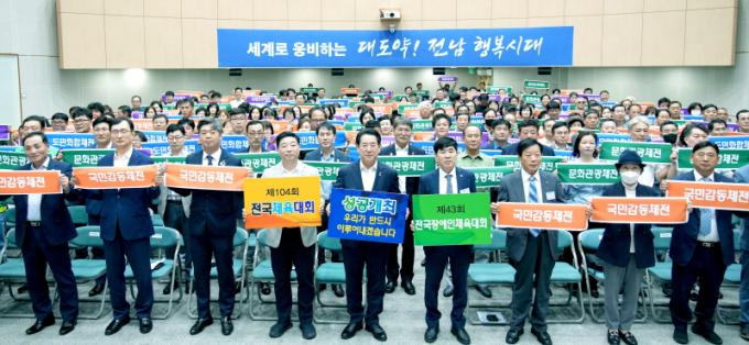 ÁÖ»óÀ± Àü³²µµ»çȸ´Üü¿¬ÇÕȸÀåÀº ¡°À̹ø üÀüÀ» ÅëÇØ ¼±¼öµéÀÌ ±×µ¿¾È °¥°í´ÛÀº ±â·®À» ¸¶À½²¯ ÆîÄ¡°í, °ü¶÷°´µéÀÌ ¾ÈÀüÇÏ°í Æí¾ÈÇÑ °¡¿îµ¥ ÀØÁö ¸øÇÒ Ãß¾ïÀ» ¸¸µé¾î °¥ ¼ö ÀÖµµ·Ï 200¸¸ µµ¹ÎÀÌ ÇÔ²² ÈûÀ» ¸ð¾Æ¾ß ÇÑ´Ù¡±¸ç ¡°Àü³²µµ »çȸ´Üü¿¬ÇÕȸ°¡ µµ¹Î ¿ª·®À» °áÁýÇϴµ¥ ¾ÕÀå¼°Ú´Ù¡±°í °Á¶Çß´Ù.
