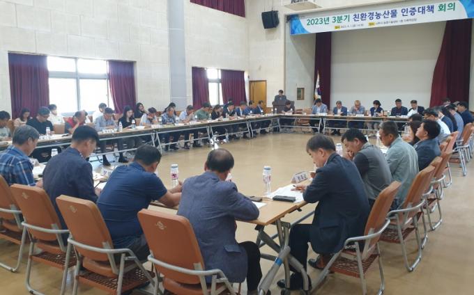À̹ø ȸÀÇ¿¡¼´Â °¢ ½Ã±º ģȯ°æÀÎÁõ ¸ñÇ¥´Þ¼º ÃßÁø»óȲÀ» Á¡°ËÇϰí, ģȯ°æ ³ó»ê¹° ÀÎÁõ È®´ë ¿ì¼ö ½Ã±º¿¡ ´ëÇÑ »ç·Ê¸¦ ¹ßÇ¥Çß´Ù. ÃÖ±Ù ³ó¾àºñ»ê ¹®Á¦¿Í ģȯ°æ³óÀÚÀç µî ÅõÀÚºñ¿ëÀÌ ³ôÀº °ú¼ö¡¤Ã¤¼Ò ǰ¸ñÀÇ Ä£È¯°æ ÁøÀÔÀ庮À» ÇØ°áÇϱâ À§ÇÑ ÅäÀǵµ ÁøÇàµÆ´Ù.