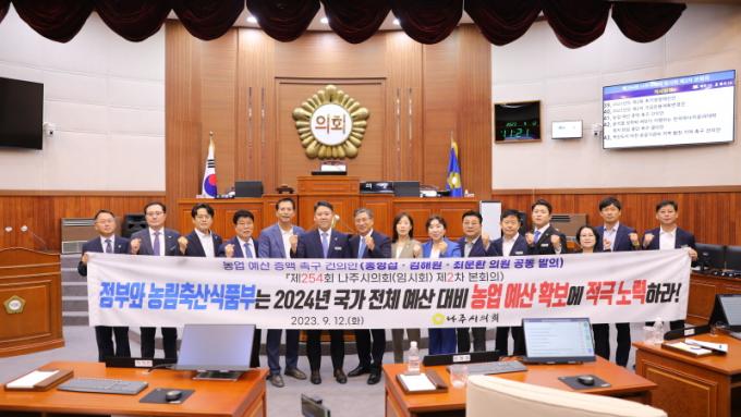 ³ªÁÖ½ÃÀÇȸ´Â À̹ø °ÇÀǾÈÀ» ÅëÇØ ¡®2024³â ±¹°¡ Àüü ¿¹»ê ´ëºñ ³ó¾÷ ¿¹»ê 5%¸¦ È®º¸ÇÒ °Í¡¯°ú ¡®³ó¾÷ ÇöÀå°ú ³ó¹ÎµéÀÇ ¸ñ¼Ò¸®°¡ ¹Ý¿µµÈ ³ó¾÷ ¿¹»êÀ» Æí¼ºÇÒ °Í¡¯À» ¿ä±¸Çß´Ù.