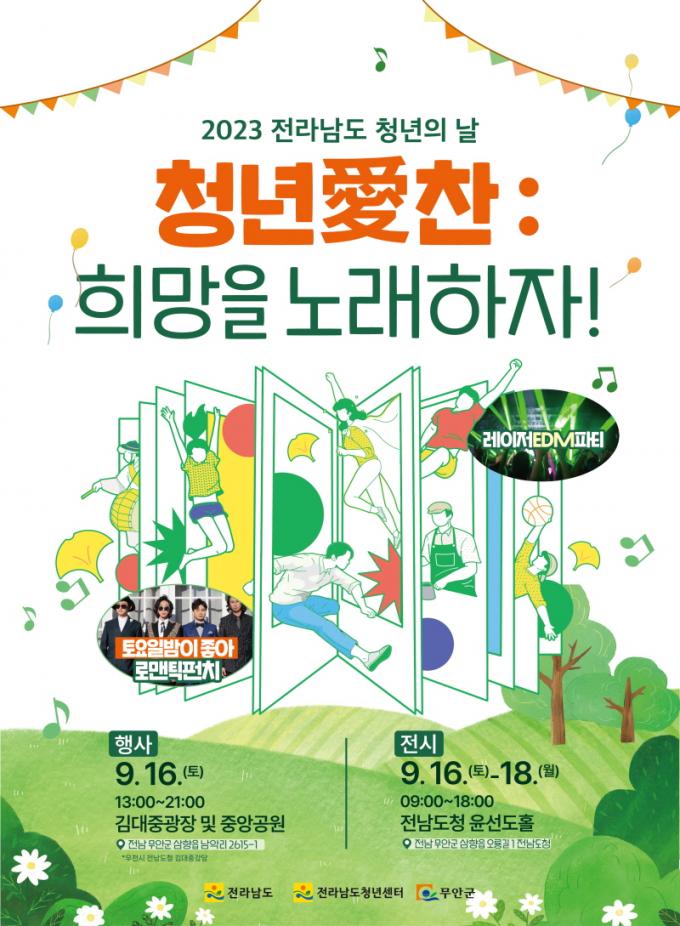 ÁÖ¿ä Çà»ç´Â ¸ñÆ÷´ë ÇлýµéÀÇ ÆÐ¼Ç&¹«¿ë¼î, µµ³» ´ëÇб³ Àεð¹êµå °ø¿¬, û³â°¡¿äÁ¦, û³âÁ¤Ã¥ À¯°øÀÚ Ç¥Ã¢, ÃÊû°¡¼ö °ø¿¬(·Î¸Çƽ ÆÝÄ¡), û³â Èñ¸Á ¹ÂÁ÷Æä½ºÆ¼¹ú ¹× ·¹ÀÌÀú ÀüÀÚ¹«¿ëÀ½¾Ç(EMD) ÆÄƼ µîÀÌ´Ù. ¿ìõ ½Ã ±â³ä½ÄÀº Àü³²µµÃ» ±è´ëÁß°´ç¿¡¼ ¿¸± ¿¹Á¤ÀÌ´Ù.