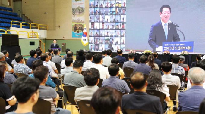 ±è¿µ·Ï Áö»ç´Â À̳¯ ¿ÀÈÄ Áøµµ±º ½Ç³»Ã¼À°°ü¿¡¼ µµ¹Î°úÀÇ ´ëȸ¦ °³ÃÖÇß´Ù. À̳¯ µµ¹Î°úÀÇ ´ëÈ¿¡´Â ±èÈñ¼ö Áøµµ±º¼ö, À念¿ì Áøµµ±ºÀÇȸ ÀÇÀå, ±èÀÎÁ¤ Àü³²µµÀÇ¿ø, ¿À¹Ì¼± Áøµµ±³À°Áö¿øÃ» ±³À°Àå, ±è±¤¼± Áøµµ¼Ò¹æ¼Àå, À̱â¾Ï ³ëÀÎȸÀå µî 200¿© ¸íÀÌ ¿Â¡¤¿ÀÇÁ¶óÀÎÀ¸·Î Âü¼®Çß´Ù.