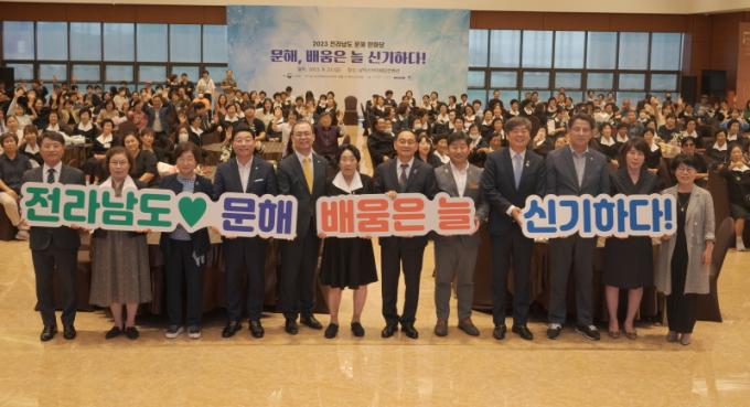 ƯÈ÷ ¡®¹®ÇØ, ¹è¿òÀº ´Ã ½Å±âÇÏ´Ù!¡¯¸¦ ÁÖÁ¦·Î ¿ÃÇØ ±³À°ºÎ¿¡¼ ÁÖÃÖÇÑ Á¦12ȸ Àü±¹ ¼ºÀι®Çر³À° ½ÃÈÀü¿¡¼ ±³À°ºÎÀå°ü»óÀ» ¼ö»óÇÑ ¼Û´öÈ(82¡¤¸ñÆ÷) ´ÔÀ» ºñ·ÔÇØ ±¹È¸±³À°À§¿øÀå»ó, ±¹°¡Æò»ý±³À°ÁøÈï¿øÀå»ó, Àü³²µµÁö»ç»ó, Àü³²µµÀÇȸÀÇÀå»ó, Àü³²µµ±³À°°¨»ó µî 44¸íÀ» ½Ã»óÇß´Ù.