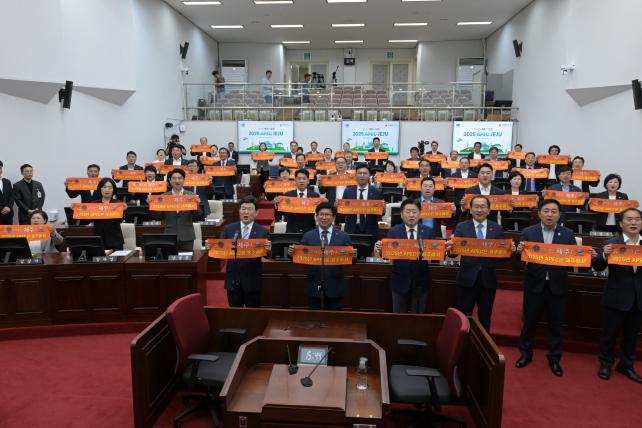 À̳¯ Á¦ÁÖÆ¯º°ÀÚÄ¡µµÀÇȸ ±è°æÇÐ ÀÇÀåÀ» ºñ·ÔÇÑ Àüü ÀÇ¿ø°ú ¿À¿µÈÆ Áö»ç, ±è±¤¼ö ±³À°°¨°ú °£ºÎ°ø¹«¿øÀÌ ÇÔ²² Âü¿©ÇÏ¿´À¸¸ç, Âü¼®ÀÚµéÀº 2025³â APEC Á¤»óȸÀÇ Á¦ÁÖ À¯Ä¡¸¦ À§ÇÑ °øµ¿ ³ë·ÂÀ» ´ÙÁüÇϰí APEC Á¦ÁÖ °³ÃÖ¸¦ ±â¿øÇÏ´Â ÆÛÆ÷¸Õ½º¸¦ ÁøÇàÇÏ¿© APEC Á¦ÁÖ À¯Ä¡¸¦ À§ÇÑ µµ¹ÎÀÇ ¿ª·®°áÁý°ú Àû±ØÀûÀÎ ÁöÁö¸¦ À§ÇÑ ¹ÚÂ÷¸¦ ±âÇÏ´Â °è±â¸¦ ¸¶·ÃÇÏ¿´´Ù. ±è°æÇÐ ÀÇÀåÀº ¡°2025³â APEC Á¤»óȸÀÇ À¯Ä¡¸¦ À§ÇÏ¿© ¼¿ï, ºÎ»ê, ÀÎõ, °æºÏ µî À¯¼öÀÇ µµ½ÃµéÀÌ Ä¡¿ÇÑ °æÀïÀ» ¹úÀ̰í ÀÖ´Â »óȲ¿¡¼ ¹Ýµå½Ã Á¦ÁÖ·Î À¯Ä¡Çϱâ À§Çؼ´Â µµ¹ÎµéÀÇ °ø°¨´ë¸¦ Çü¼ºÇϰí Á¦ÁÖÀÇ ¸ðµç ¿ª·®À» Çϳª·Î °áÁý½ÃÄÑ¾ß ÇÑ´Ù¡±°í °Á¶Çß´Ù. ÀÌ¾î ±è°æÇÐ ÀÇÀåÀº ¡°¿ì¸® µµÀÇȸ¿¡¼µµ ÀÇ¿ø °³°³ÀÎÀÌ APEC Á¤»óȸÀÇ À¯Ä¡¸¦ À§ÇÑ È«º¸´ë»ç°¡ µÇ¾î APEC Á¤»óȸÀÇ Á¦ÁÖ À¯Ä¡ÀÇ Çʿ伺°ú ´çÀ§¼ºÀ» È«º¸ÇÏ¸ç µµ¹ÎµéÀÇ °áÁýµÈ ÀÇÁö¸¦ ´ë³»¿Ü ¾Ë¸®±â À§ÇØ ´Ù °°ÀÌ ³ë·ÂÇÏÀÚ¡±°í ´ÙÁüÇÏ¿´´Ù.