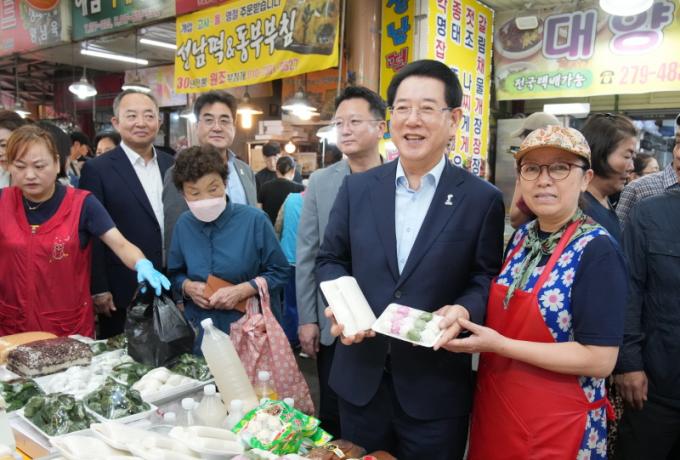 [È£³²µµ¹Î½Å¹® = ÀÓÀ±Áø ±âÀÚ] ±è¿µ·Ï Àü¶ó³²µµÁö»ç´Â Ãß¼®À» ¾ÕµÐ 27ÀÏ ÀüÅë½ÃÀåÀ» µÑ·¯º¸¸ç »óÀεéÀ» °Ý·ÁÇϰí, ½ÃÀåÀ» ãÀº ½Ã¹Îµé¿¡°Ô ´ö´ãÀ» ³ª´©´Â ÇÑÆí, À庸±âµµ ÇÔ²² Âü¿©Çß´Ù.