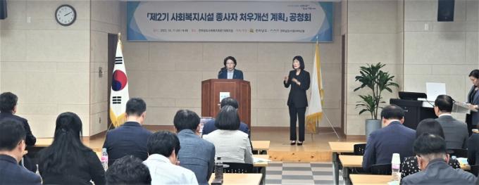 À̾î ÃÖ¼±±¹ Àü³²µµÀÇȸ º¸°Çº¹Áöȯ°æÀ§¿øÈ¸À§¿øÀå°ú ±èÀçö Àü³²µµÀÇ¿ø, Á¤º´°ü Àü³²»çȸº¹Áö»çÇùȸÀå, À̼±¹Ì ±¤ÁÖº¹Áö¿¬±¸¿ø Á¤Ã¥½ÇÀå, Á¤°Èñ ÇѰܷʳë»ç¹ý·ü¿ø ´ëÇ¥, °û¿µÈ£ Àü³²µµ »çȸº¹Áö°úÀåÀÌ Åä·Ð¿¡ Âü¿©ÇØ Ã³¿ì°³¼± ¹æÇâÀ» ³íÀÇÇß´Ù.