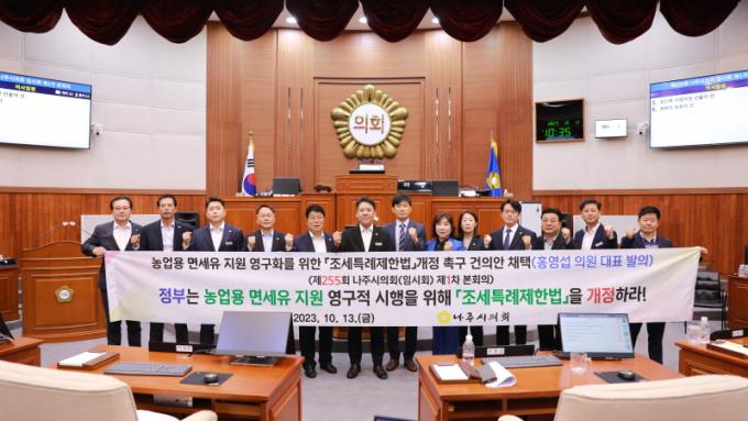 ³ªÁÖ½ÃÀÇȸ´Â À̹ø °ÇÀǾÈÀ» ÅëÇØ ¡®³ó¾÷¿ë ¸é¼¼À¯ Á¦µµ°¡ ¿µ±¸ÀûÀ¸·Î ½ÃÇàµÉ ¼ö ÀÖµµ·Ï 「Á¶¼¼Æ¯·ÊÁ¦Çѹý(Á¦106Á¶ÀÇ2Á¦1Ç×)」À» °³Á¤ÇÒ °Í¡¯°ú ¡®³ó¾÷ °æÁ¦ À§±â¸¦ ±Øº¹Çϱâ À§ÇÑ ´ëÃ¥À» ¸¶·ÃÇÏ¿© ³ó¾÷ÀεéÀÇ Áö¼ÓÀûÀÎ ¿µ³óȰµ¿À» º¸ÀåÇÒ °Í¡¯À» ¿ä±¸Çß´Ù.