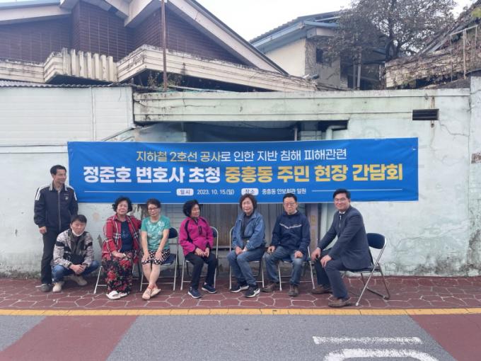 À̳¯ Á¤ÁØÈ£ º¯È£»ç´Â ÁöÇÏö 2È£¼± °ø»ç·Î ÀÎÇØ ÁßÈﵿ ÀÏ´ë ÁÖÅñտ Áö¹ÝħÇÏ µî ÇÇÇØ°¡ ¼ÓÃâÇϰí ÀÖ´Â ÇöÀåÀ» ´ä»çÇϰí ÁֹεéÀÇ ¾Ö·Î»çÇ×À» ûÃëÇÏ¿´´Ù.