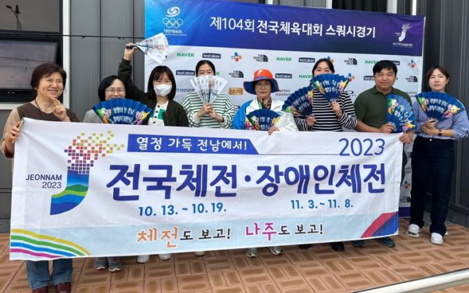 °ÀÎÁß Àü³²µµ Àü±¹Ã¼Àü±âȹ´ÜÀåÀº ¡°´ëȸ Âü°¡ ¼±¼öµé¿¡°Ô °¡Àå ÈûÀÌ µÇ´Â °ÍÀº µµ¹ÎÀÀ¿ø´ÜÀÇ ¶ß°Å¿î ÀÀ¿ø¡±À̶ó¸ç ¡°Àü±¹Ã¼Àü ¼º°ø °³ÃÖ¸¦ À§ÇØ ÇѸ¶À½ ÇѶæÀ¸·Î ¿°ú ¼ºÀ» ´ÙÇØÁÖ´Â ÀÀ¿ø´Ü¿¡ Áø½ÉÀ¸·Î °¨»çµå¸°´Ù¡±°í ¸»Çß´Ù.