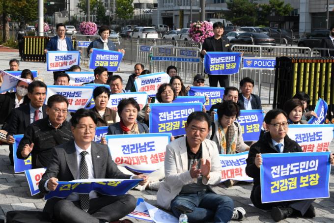 À̳¯ Áýȸ´Â Àǰú´ëÇÐ ½Å¼³ÀÌ ¾Æ´Ñ ±âÁ¸ ÀÇ´ë Á¤¿øÀÇ Áõ¿ø¸¸À» °Á¶ÇÏ´Â ÃÖ±Ù Á¤ºÎ ¹æÄ§À» ±ÔźÇϰíÀÚ ¸ðÀÎ ÀÚ¸®·Î, Àü³²µµÀÇȸ, ¼øÃµ´ë µî 500¿© ¸í°ú ÇÔ²² ÀÇ´ë ½Å¼³ÀÇ ´çÀ§¼º°ú ½Ã±Þ¼ºÀ» °Á¶Çϱâ À§ÇØ ÇѸ¶À½À¸·Î ¶æÀ» ¸ð¾Ò´Ù. Áýȸ¿¡ Âü¼®ÇÑ ÀÇ¿øµéÀº ±¤¿ªÁöÀÚü Áß À¯ÀÏÇÏ°Ô Àǰú´ëÇÐÀÌ ¾ø´Â Àü¶ó³²µµÀÇ Çö½Ç°ú ÀÇ·á»ýÁ¸±Ç º¸ÀåÀ» È£¼ÒÇÏ´Â µî ´ë±¹¹Î È«º¸ Ȱµ¿À» ÆîÄ¡¸ç, Áö¹æÀÇ ÇʼöÀǷᡤ°ø°øÀÇ·áü°è ºØ±«¸¦ ¸·À» ¼ö ÀÖ´Â Á¦µµÀû ¹æ¾È ¸¶·ÃÀ» Ã˱¸Çß´Ù.