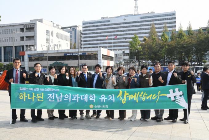 Áö³ 18ÀÏ ¼øÃµ½ÃÀÇȸ´Â ¼¿ï ¿ë»ê ÀüÀï±â³ä°ü ¾Õ¿¡¼ ¿¸° Àü³² Àǰú´ëÇÐ ½Å¼³ Ã˱¸ Áýȸ¿¡ Âü¼®ÇØ ÀÇ´ë ½Å¼³À» ¿ä±¸ÇÏ´Â ¸ñ¼Ò¸®¸¦ ³Â´Ù.