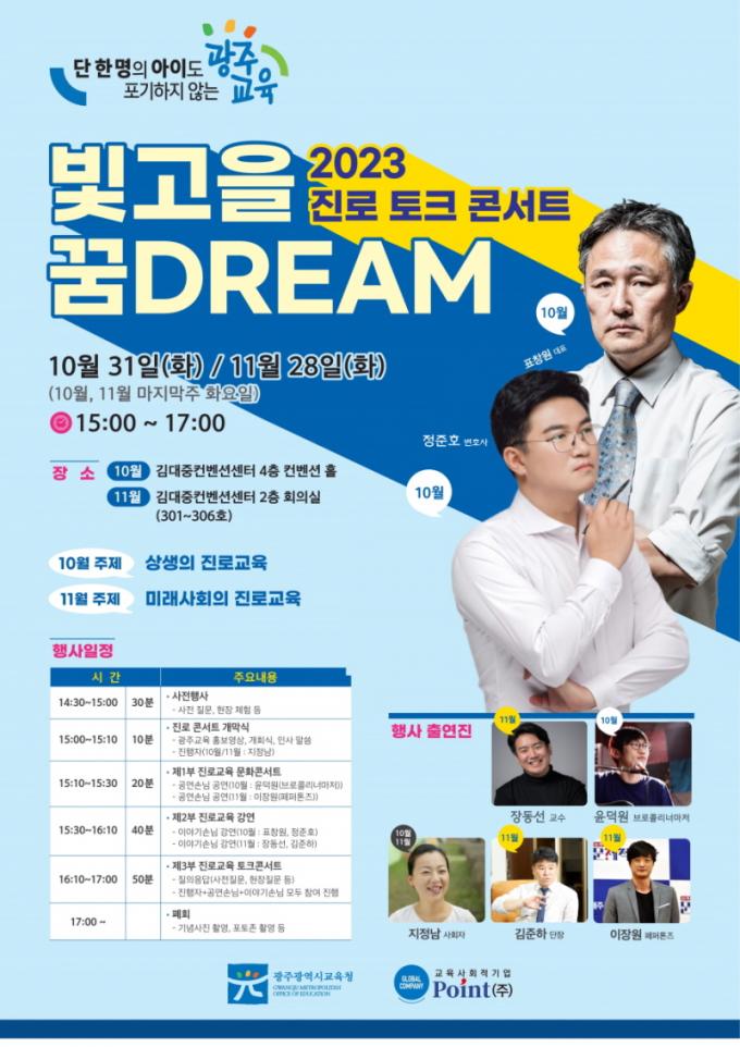 À̳¯ °³ÃÖµÈ ¡®ºû°íÀ» ²ÞDREAM¡¯ Áø·Î ÅäÅ© ÄܼƮ´Â ±¤ÁÖ±¤¿ª½Ã±³À°Ã»°ú ±³À°»çȸÀû±â¾÷ Point(ÁÖ)°¡ ÁÖÃÖÇϰí Á¤ÁØÈ£ º¯È£»ç, ǥâ¿ø ¹üÁ˰úÇבּ¸¼Ò ¼ÒÀå, À±´ö¿ø(ºê·ÎÄݸ®³Ê¸¶Àú) °¡¼ö¿Í ÇÔ²² Áø·Î ÅäÅ© ÄܼƮ °¿¬ÀÚ·Î Âü¿©ÇßÀ¸¸ç ¹è¿ì ÁöÁ¤³²¾¾ »çȸ·Î ÁøÇàµÆ´Ù.