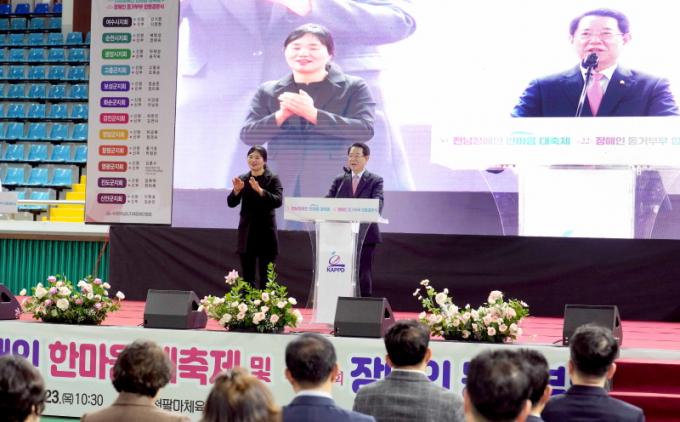 À̳¯ Çà»ç´Â ±è¿µ·Ï Àü³²µµÁö»ç¿Í Àü³²µµÀÇȸ ÃÖ¼±±¹ º¸°Çº¹Áöȯ°æÀ§¿øÀå, ½Å¹ÎÈ£ ±âȹÇàÁ¤À§¿øÀå µî 2õ¿© ¸íÀÌ Âü¼®ÇÑ °¡¿îµ¥ ±â³äÇà»ç¿Í Àå¾ÖÀÎ µ¿°ÅºÎºÎ ÇÕµ¿°áÈ¥½Ä, Àå¾ÖÀÎ ¾î¿ï¸² ÇѸ¶´ç ÃàÁ¦·Î ÆîÃÄÁ³´Ù.