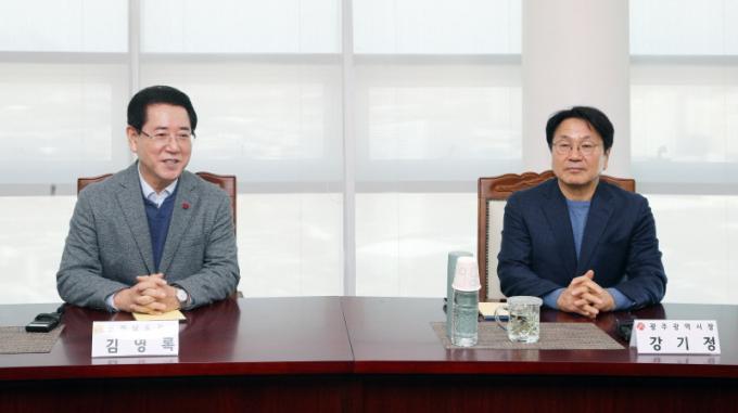 Àü³²µµ¿¡ µû¸£¸é Áö³ 17ÀÏ Çѱ¹³ó¼ö»ê½ÄǰÀ¯Åë°ø»ç¿¡¼ ¿¸° ¡®±¤ÁÖ ¹Î°£¡¤±º °øÇ× ÀÌÀü ½Ã¡¤µµÁö»ç ȸ´ã¡¯¿¡¼ ±¤ÁÖ½ÃÀå°ú Àü³²Áö»ç°¡ ±¤ÁÖ ¹Î°£¡¤±º °øÇ×ÀÇ ¹«¾È ÀÌÀü¿¡ ¶æÀ» °°ÀÌÇϰí, ¾ç Áö¿ªÀÇ Àå±âÀû ¹ßÀüÀ» À§ÇØ °øµ¿À¸·Î ³ë·ÂÇϱâ·Î ÇÕÀÇÇß´Ù.