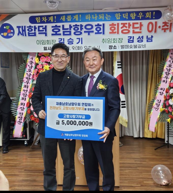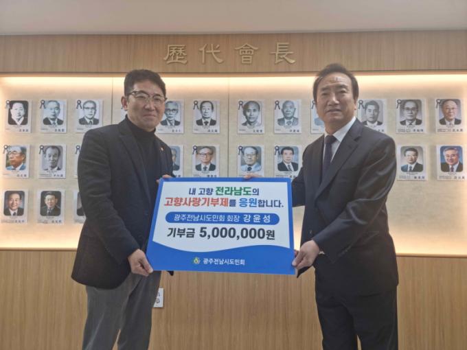 Àü¶ó³²µµ´Â ÀçÃæ³²È£³²Çâ¿ìȸ ¿¬ÇÕȸ¿Í °À±¼º ±¤ÁÖÀü³²½Ãµµ¹ÎȸÀåÀÌ °íÇâ»ç¶û±âºÎ±Ý 500¸¸ ¿ø¾¿À» ±âŹÇß´Ù°í ¹àÇû´Ù.