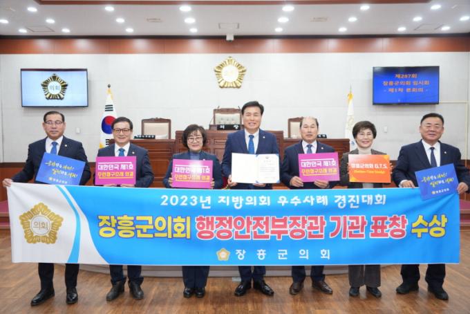 ÇÑÆí ÀÓ½Ãȸ °³È¸½Ä¿¡¼´Â Áö³ÇØ 11¿ù ÇàÁ¤¾ÈÀüºÎ¿¡¼ ÁÖ°üÇÏ¿© Àü±¹ 94°³ ÀÇȸ°¡ Âü¿©ÇÑ °¡¿îµ¥ ¿¸° 2023³â Áö¹æÀÇȸ ¿ì¼ö»ç·Ê °æÁø´ëȸ¡®´ë»ó ¼ö»ó¡¯¿¡ ´ëÇÑ ±â°üǥâ Àü¼ö½ÄÀ» °¡Á³´Ù.