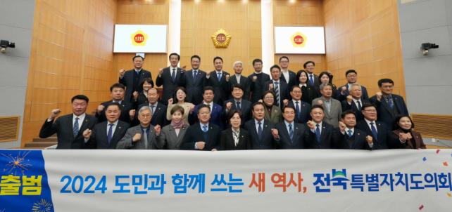 µµÀÇȸ´Â À̳¯ º»È¸ÀÇÀå¿¡¼ Àüü ÀÇ¿øÀÌ Âü¼®ÇÑ °¡¿îµ¥ ¡®2024 µµ¹Î°ú ÇÔ²² ¾²´Â »õ ¿ª»ç, ÀüºÏƯº°ÀÚÄ¡µµÀÇȸ¡¯¶ó´Â ¹®±¸°¡ ÀûÈù Çö¼ö¸·À» µé°í, Áö¿ª ¹ßÀü°ú µµ¹Î ÇູÀ» À§ÇÑ ´ÙÁüÀÇ ±¸È£¸¦ ¿ÜÃÆ´Ù.