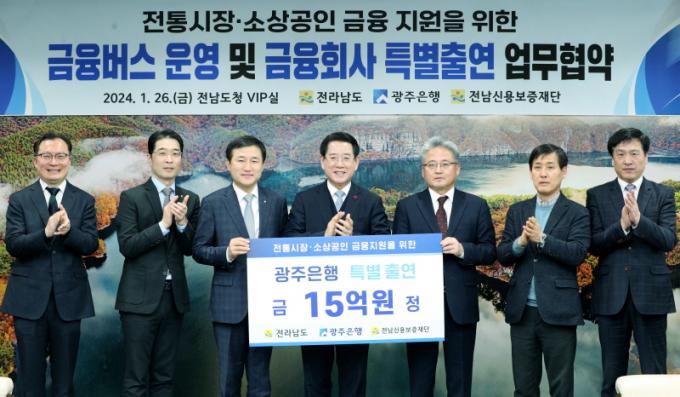 [È£³²µµ¹Î½Å¹® = ÀÓÀ±Áø ±âÀÚ] Àü¶ó³²µµ´Â 26ÀÏ µµÃ» Á¢°ß½Ç¿¡¼ Àü³²½Å¿ëº¸ÁõÀç´Ü(ÀÌÇÏ Àü³²½Åº¸), ±¤ÁÖÀºÇà°ú ÇÔ²² ÀüÅë½ÃÀ塤¼Ò»ó°øÀÎ ±ÝÀ¶ Áö¿øÀ» À§ÇÑ ¡®±ÝÀ¶¹ö½º ¿î¿µ ¹× ±ÝÀ¶È¸»ç Ưº°Ã⿬ ¾÷¹«Çù¾à¡¯À» Çß´Ù.