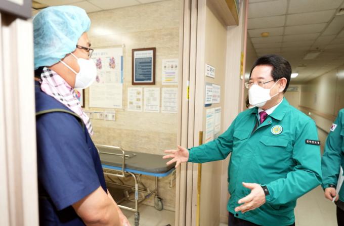 [È£³²µµ¹Î½Å¹® = ÀÓÀ±Áø ±âÀÚ] ±è¿µ·Ï Àü¶ó³²µµÁö»ç´Â 29ÀÏ ÀÇ´ë Áõ¿ø °ü·Ã ÀÇ»ç Áý´ÜÇൿÀ¸·Î ¹ß»ýÇÑ ÀÇ·á°ø¹é¿¡ µû¸¥ µµ¹Î ºÒÆí ÃÖ¼Òȸ¦ À§ÇØ ¼øÃµ ¼º°¡·Ñ·Îº´¿øÀ» ¹æ¹®ÇØ ºñ»óÁø·áü°è¸¦ Á¡°ËÇÏ°í ±Ù¹«ÀÚµéÀ» °Ý·ÁÇß´Ù.