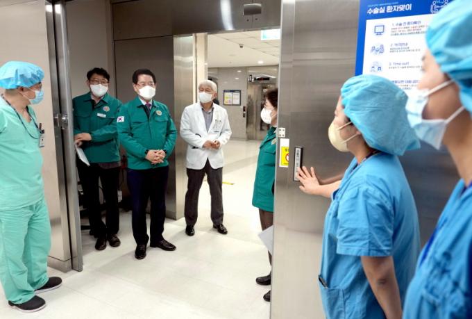 À̳¯ ÇöÀå Á¡°Ë¿¡¼ ±è¿µ·Ï Áö»ç´Â ¡°¼º°¡·Ñ·Îº´¿øÀº Äڷγª19¸¦ °ÞÀ¸¸é¼ µµ¹ÎÀ» À§ÇØ Çå½ÅÇß´ø ÀÇ·á±â°üÀ̾ú´Ù¡±¸ç ¡°À̹ø ÀÇ·á°ø¹é »óȲ¿¡¼µµ ȯÀÚ °çÀ» Áö۰í ÀÖ´Â ÀÇ·áÁø¿¡ °¨»çÇÏ´Ù¡±°í ¸»Çß´Ù. ÀÌ¾î º´¿øÀåÀ¸·ÎºÎÅÍ ÀÇ·áÁø ÀÌÅ»¿¡ ´ëºñÇÑ ºñ»óÁø·á´ëÃ¥À» µè°í ¡°ÇöÀç ÀÇ·á°ø¹é »óȲÀÌ Àå±â鵃 ¿ì·Áµµ ÀÖ´Â ¸¸Å º´¿ø Ãø¿¡¼µµ ÀÀ±ÞȯÀÚ¿¡ ´ëÇÑ Áø·á¿¡ Â÷ÁúÀÌ ¹ß»ýÇÏÁö ¾Êµµ·Ï ´ëÀÀÃ¥À» ¸¶·ÃÇØ´Þ¶ó¡±°í ´çºÎÇß´Ù.