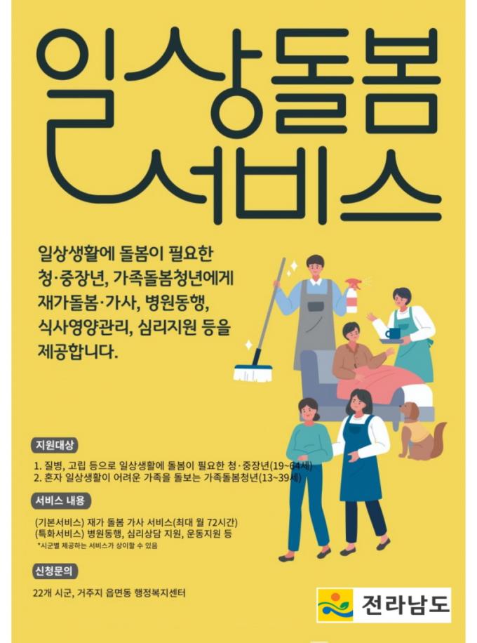 ÀÌ»ó½É Àü³²µµ º¸°Çº¹Áö±¹ÀåÀº ¡°È¥ÀÚ¼ ÀÏ»ó»ýȰÀÌ ¾î·Á¿ü´ø û¡¤ÁßÀå³âÀ̳ª ¾ÆÇ °¡Á·À» µ¹º¸´Â °¡Á·µ¹º½ û³âÀÌ Àϻ󵹺½¼ºñ½º¸¦ ÅëÇØ »îÀÇ ÁúÀ» ³ôÀÏ °ÍÀ¸·Î ±â´ëÇÑ´Ù¡±¸ç ¡°»ç¾÷ ÃʱâÀÎ ¸¸Å ÀÌ¿ëÀÚ È®º¸¿Í ¼ºñ½º ü°è ±¸Ãà¿¡ Èû½á µ¹º½ÀÌ ÇÊ¿äÇÑ µµ¹Î¿¡°Ô Æø³ÐÀº º¹Áö¼ºñ½º¸¦ Á¦°øÅä·Ï Çϰڴ١±°í ¸»Çß´Ù.