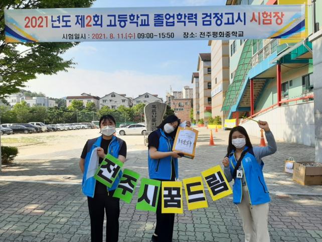 ÀüÁÖ½ÃÇб³¹Ûû¼Ò³âÁö¿ø¼¾ÅÍ(¼¾ÅÍÀå Á¤Çý¼±, ÀÌÇÏ ÀüÁֽà ²Þµå¸²)´Â 11ÀÏ ÆòÈ¡¤¾ÆÁß¡¤¿À¼ÛÁßÇб³ µî ¡®2021³âµµ Á¦2ȸ ÃÊ¡¤Áß¡¤°í Á¹¾÷Çз °ËÁ¤°í½Ã¡¯ ¼öÇèÀåÀ» ã¾Æ Çб³ ¹Û û¼Ò³â 83¸í¿¡°Ô Á¡½É µµ½Ã¶ô°ú ÀÀ¿øÅ°Æ®¸¦ Àü´ÞÇß´Ù.