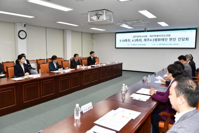 ÀÌ¾î ¡°5¡¤18 Áø»ó±Ô¸í Á¶»çº¸°í¼ °ø°³ ÇàÅÂÀÇ Æó¼â¼º¿¡ ´ëÇØ °ø°¨´ë°¡ Çü¼ºµÆ´Ù¡±¸ç ¡°Áö³ÇØ¿¡ Á¦ÁÖ¿Í ±¤ÁÖ ÀÇȸ°¡ ¹ÎÁÖÆòȺ§Æ®¸¦ ±¸ÃàÇϰí Çù·ÂÇϱâ·Î ÇÑ ¸¸Å, 5¡¤18Áø»ó±Ô¸íÁ¶»çÀ§¿¡ ´ëÇÑ ´ëÀÀ¿¡µµ ÈûÀ» º¸ÅÂÁáÀ¸¸é ÇÑ´Ù¡±°í ÁÖ¹®Çß´Ù. À̳¯ °£´ãȸ¿¡´Â ÇÑ±Ç Á¦ÁÖµµÀÇȸ 4¡¤3ƯÀ§ À§¿øÀå, ¹ÚµÎÈ ºÎÀ§¿øÀå, °íÀǼ÷ À§¿ø, ±èÁ¾¹Î 4¡¤3ÆòÈÀç´Ü ÀÌ»çÀå, ¾çÁ¤½É Á¶»ç¿¬±¸À§¿ø µîÀÌ Âü¼®ÇßÀ¸¸ç, ±¤ÁÖ½ÃÀÇȸ¿¡¼´Â Á¤¹«Ã¢ ÀÇÀå, Á¤´ÙÀº 5¡¤18ƯÀ§ À§¿øÀå, ¾ÈÆòȯ À§¿ø, äÀºÁö¡¤À̸í³ë À§¿ø µîÀÌ Âü¼®Çß´Ù.