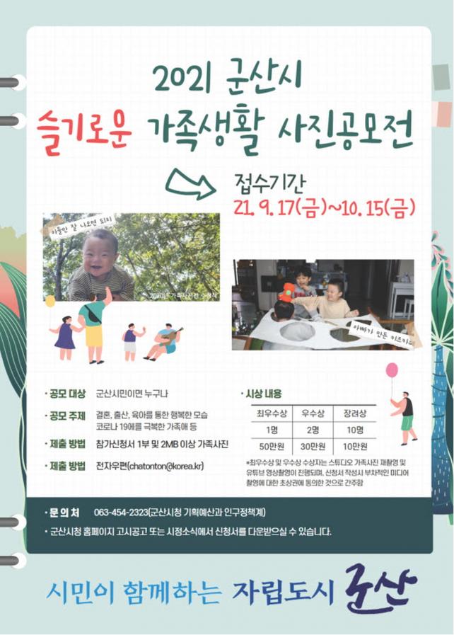 ±º»ê½Ã¹ÎÀ̶ó¸é ´©±¸³ª Âü¿©°¡ °¡´ÉÇÑ À̹ø °ø¸ðÀüÀº 17ÀϺÎÅÍ ¿À´Â 10¿ù 15ÀϱîÁö °³ÃֵǸç, °¡Á·Ä£È¹®È¿¡ ´ëÇÑ ±àÁ¤Àû ÀνÄÀ» ½É¾îÁÙ ¼ö ÀÖ´Â ÁÖÁ¦¸¦ »çÁø¿¡ ´ã¾Æ ½Åû¼¿Í ÇÔ²² À̸ÞÀÏ(chatonton@korea.kr)·Î Á¦ÃâÇÏ¸é µÈ´Ù.