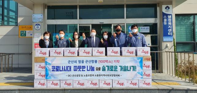 À̳¯ Çà»ç´Â OCI ¢ß±º»ê°øÀå°ú ³ëµ¿Á¶ÇÕÀÇ ÈÄ¿øÀ» ¹Þ¾Æ ÀÌ·ïÁ³À¸¸ç °ü³» Àú¼ÒµæÃþ 100°¡±¸¿¡ ±º»ê«»Í¶ó¸éÀ» Àü´ÞÇß´Ù. À̹ø Çà»ç¸¦ ÁÖÃÖÇÑ ÀÓ±æÈÆ Áö¿ª»çȸº¸ÀåÇùÀÇüÀ§¿øÀåÀº ¡°³ª´®À» ½ÇõÇÑ OCI±º»ê°øÀå°ú ³ëµ¿Á¶ÇÕ¿¡ °¨»çÀÇ ¸»¾¸À» µå¸®¸ç, ½Ò½ÒÇØÁø ³¯¾¾¿¡ ¸¶À½ÀÌ ÈÆÈÆÇØÁö´Â ¶æ±íÀº ³ª´® Çà»çÀÌ´Ù.¡±°í ¸»Çß´Ù.