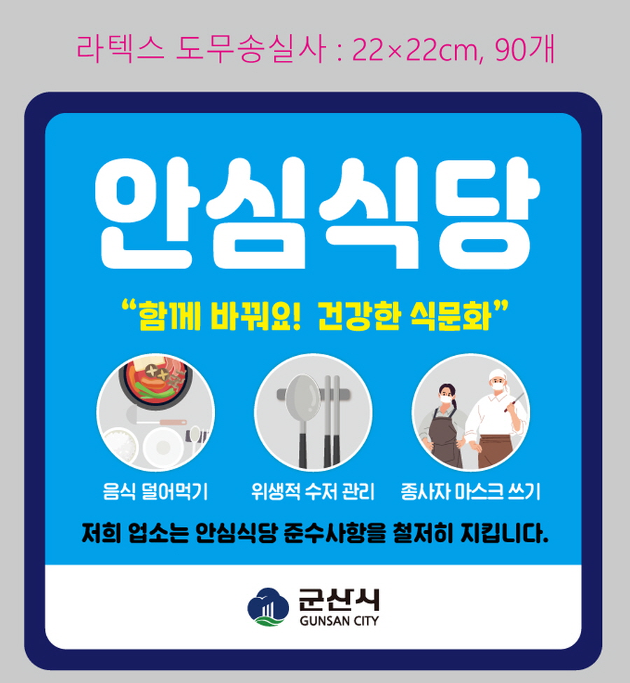 ¾È½É½Ä´çÀ¸·Î ÁöÁ¤µÈ ¾÷¼Ò¿¡ ´ëÇØ¼´Â ¾÷¼Ò´ç ¾È½É½Ä´ç ÁöÁ¤ Ç¥ÁöÆÇ°ú À§»ý¿ëǰ(¾ÕÁ¢½Ã, Áý°ÔÅë, ¼öÀúÁý, Áý°Ô) µî¿¡ ¾È½É½Ä´ç Ç¥½Ã¸¦ ÇÑ ÈÄ Áö¿øÀ¸·Î ¼ÒºñÀÚµéÀÌ ¾È½É½Ä´çÀÓÀ» ¾Ë¾Æ º¼ ¼ö ÀÖ´Ù. ¶ÇÇÑ ¿µ¾÷ÀÚµéÀº ÀںνÉÀ» °®°í ¿µ¾÷ÇÒ ¼ö ÀÖµµ·Ï Çϰí ÀÖ´Ù.