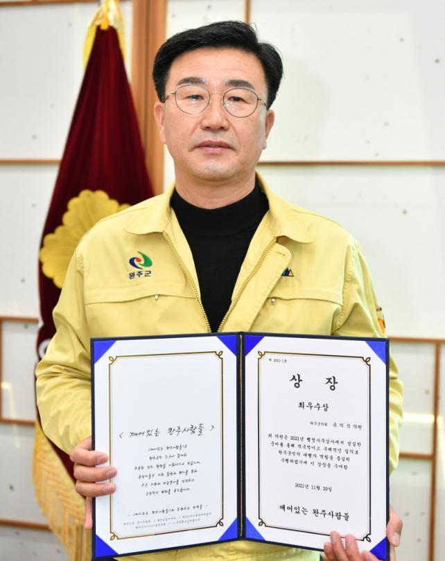 À̹ø Æò°¡¿¡ Âü¿©ÇÑ ÁֹεéÀº 29ÀÏ ¿ÏÁÖ±ºÀÇȸ¿¡¼ ¿ì¼ö ÀÇ¿ø°ú Çǰ¨ºÎ¼·Î ¼±Á¤µÈ À¯ÀÇ½Ä ÀÇ¿ø°ú ¹Ýâ¿ø »ê¸²³ìÁö°úÀå¿¡°Ô »óÀå°ú ²É´Ù¹ßÀ» Àü´ÞÇß´Ù.