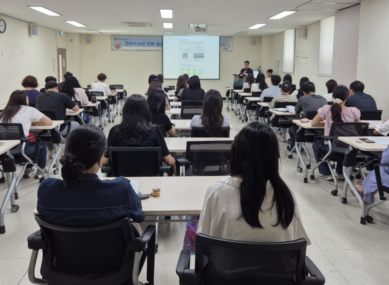 ÀüÁֽô 5ÀÏ ÀüÁֽõµ½ÃÀç»ýÁö¿ø¼¾ÅÍ ±³À°Àå¿¡¼ °Ç°º¸Çè°ø´Ü ÀüÁֺϺΡ¤³²ºÎÁö»ç °ü°èÀÚ¿Í ¿¹¼öº´¿ø °ü°èÀÚ, 34°³ µ¿ Áֹμ¾ÅÍ ÅëÇÕµ¹º½ ´ã´çÀÚ µî 50¿© ¸íÀÌ Âü¼®ÇÑ °¡¿îµ¥ ¡®2025³â Á¦4Â÷ ÀÇ·á-µ¹º½ ÅëÇÕÁö¿ø ¾÷¹«°øÀ¯ °£´ãȸ¡¯¸¦ °¡Á³´Ù.