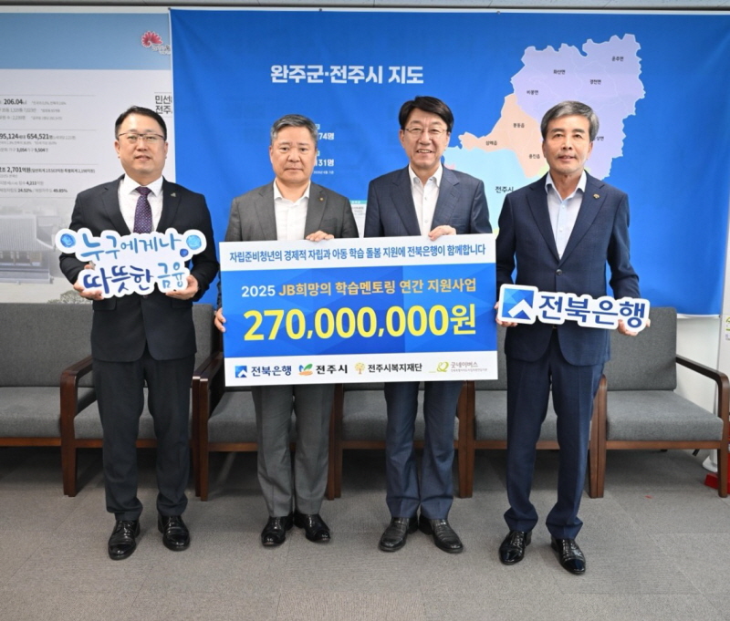 ÀüÁÖ½Ã¿Í ÀüºÏÀºÇà, ÀüºÏƯº°ÀÚÄ¡µµÀÚ¸³Àü´ã±â°ü(°üÀå ±è°æÈ¯), ÀüÁֽú¹ÁöÀç´Ü(ÀÌ»çÀå À±¹æ¼·)Àº 10ÀÏ ÀüÁÖ½ÃÀå½Ç¿¡¼ ¿ì¹ü±â ÀüÁÖ½ÃÀå°ú ¹éÁ¾ÀÏ ÀºÇàÀå, ¿ÀÇö±Ç ºÎÇàÀå, ±è°æÈ¯ °üÀå, À±¹æ¼· ÀÌ»çÀå µîÀÌ Âü¼®ÇÑ °¡¿îµ¥ ¡®ÀüÁÖ ÀÚ¸³Áغñû³â JB Èñ¸ÁÀÇ ÇнÀ¸àÅ丵¡¯ Áö¿øÀ» À§ÇÑ ÈÄ¿ø±Ý Àü´Þ½ÄÀ» °¡Á³´Ù.