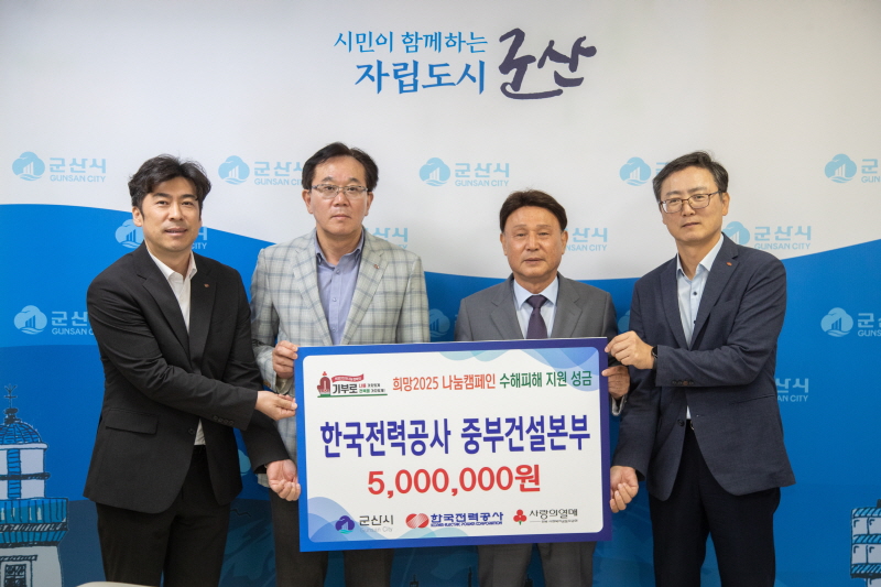 °ÀÓÁØ ±º»ê½ÃÀåÀº ¡°Áö¿ª»çȸÀÇ ¾î·Á¿òÀ» ¸ÕÀú »ý°¢Çϰí Áö¿øÀ» ¾Æ³¢Áö ¾Ê´Â Çѱ¹Àü·Â°ø»ç ÁߺΰǼ³º»ºÎ ÀÓÁ÷¿øºÐµé²² ±íÀÌ °¨»çµå¸°´Ù.¡±¶ó¸ç, ¡°Àü´ÞµÈ ¼º±ÝÀº ²À ÇÊ¿äÇÑ ÀÌ¿ôµé¿¡°Ô Áö¿øµÇ¾î ¼öÇØ ÇÇÇØ ÁֹεéÀÇ È¸º¹¿¡ Å« µµ¿òÀÌ µÉ °Í.¡±À̶ó°í ¹àÇû´Ù.