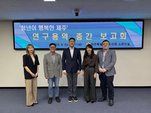 Áö³ 24ÀÏ(¼ö) ¿ÀÈÄ 5½Ã, ÀÇȸ ¼ÒȸÀǽǿ¡¼ °³ÃÖµÈ º¸°íȸ´Â ¡°Ã»³â Àα¸ À¯Ãâ ´ëÀÀÀ» À§ÇÑ Á¦ÁÖ Ã»³âÁ¤Ã¥ ½ÇÈ¿¼º ºÐ¼® ¹× °³¼±¹æ¾È ¿¬±¸¡±¸¦ ÁÖÁ¦·Î ¢ßºñÁî´Ï½º ±×·ì º¯¿µ½Ç ´ëÇ¥°ú ÀÌÇýÀÎ ºÎÀåÀÌ ¹ßÇ¥¸¦ ¸Ã¾Ò´Ù.