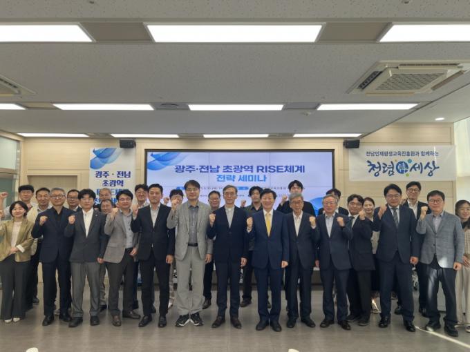 ¹üÈñ½Â Àü³²ÀÎÀçÆò»ý±³À°ÁøÈï¿øÀåÀº ¡°±¤ÁÖ¡¤Àü³²ÀÌ ¿¡³ÊÁö ±â¼ú ±â¹ÝÀÇ Ãʱ¤¿ª Çõ½Å¼ºÀåÀ» ¼±µµÇϱâ À§Çؼ´Â Áö¿ª´ëÇаú »ê¾÷°è, Çõ½Å±â°üÀÇ Çù·ÂÀÌ ¹«¾ùº¸´Ù Áß¿äÇÏ´Ù¡±¸ç ¡°À̹ø ¼¼¹Ì³ª°¡ Ãʱ¤¿ª Çù·ÂÀü·«À» ±¸Ã¼ÈÇÏ´Â °è±âµÇ±æ ¹Ù¶õ´Ù¡±°í ¸»Çß´Ù.