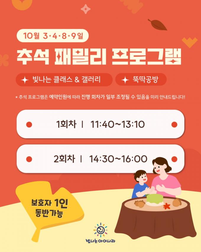 Ãß¼® ¸Â¾Æ Ưº° °¡Á· ÇÁ·Î±×·¥ 10¿ù 3¡¤4¡¤8¡¤9ÀÏ ¿î¿µ
