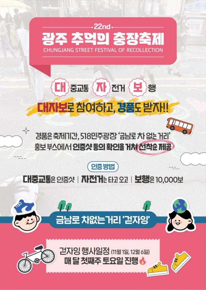 À̸¦ À§ÇØ ±¤ÁÖ±¤¿ª½Ã¿Í ¼ÕÀâ°í 5¡¤18 ¹ÎÁÖ±¤Àå¿¡¼ È«º¸ ºÎ½º¸¦ ¿î¿µÇÑ´Ù. À̰÷¿¡¼´Â ±Ý³²·Î Â÷ ¾ø´Â °Å¸® »ç¾÷ÀÇ Çʿ伺°ú ±×µ¿¾È ÃßÁø ¼º°ú¸¦ È¿°úÀûÀ¸·Î È«º¸Çϱâ À§ÇØ ¡ãÆ÷ÅäÁ¸ À̺¥Æ®(Æ÷ÅäÁ¸¿¡¼ ÂïÀº »çÁøÀ» SNS¿¡ ¿Ã¸®¸é °æÇ°À» ¼±Âø¼øÀ¸·Î Á¦°ø) ¡ã´ëÀÚº¸ ½Çõ À̺¥Æ®(´ëÁß±³Åë, ÀÚÀü°Å, º¸ÇàÀ» ÀÌ¿ëÇØ Âü¿©ÇÑ ¹æ¹®°´¿¡°Ô ¼±Âø¼øÀ¸·Î °æÇ° ÁõÁ¤) µîÀ» ÁøÇàÇÑ´Ù.
