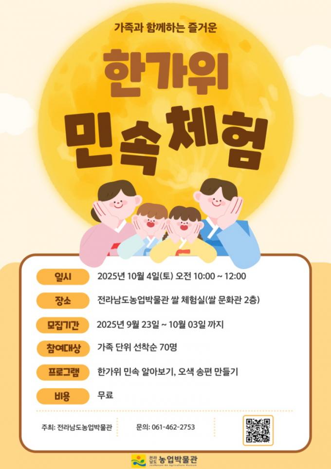 ¡®ÇѰ¡À§ ¹Î¼Ó üÇèÇà»ç¡¯´Â °¡Á· ´ÜÀ§·Î ¼±Âø¼ø 70¸íÀ» ¸ðÁýÇÑ´Ù. Âü°¡ ½ÅûÀº ³ó¾÷¹Ú¹°°ü ´©¸®Áý¿¡¼­ 10¿ù 3ÀϱîÁö Á¢¼öÇϸç, Âü°¡ºñ´Â ¹«·á´Ù.
