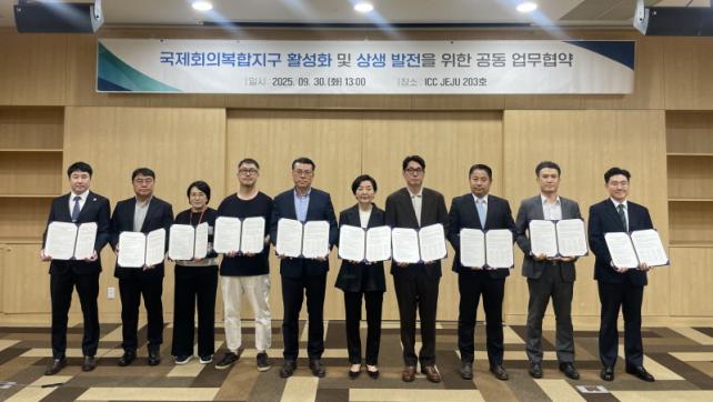 À̹ø Çù¾àÀº Á¦ÁÖ ±¹Á¦È¸ÀǺ¹ÇÕÁö±¸ ¼±Á¤ ¹× Ȱ¼ºÈ¸¦ À§ÇÑ °ÍÀ¸·Î ±¹Á¦È¸ÀǺ¹ÇÕÁö±¸¿¡ ¼±Á¤µÇ¸é Á¦ÁÖ MICE »ê¾÷ ±â¹ÝÀÌ È®ÃæµÇ°í, ±¹Á¦È¸ÀÇ µµ½Ã·Î¼ ÀÎÁöµµ Á¦°í¸¦ ÅëÇØ Çà»ç À¯Ä¡ °æÀï·ÂÀÌ ´õ¿í °ÈµÉ °ÍÀ¸·Î ±â´ëµÈ´Ù.