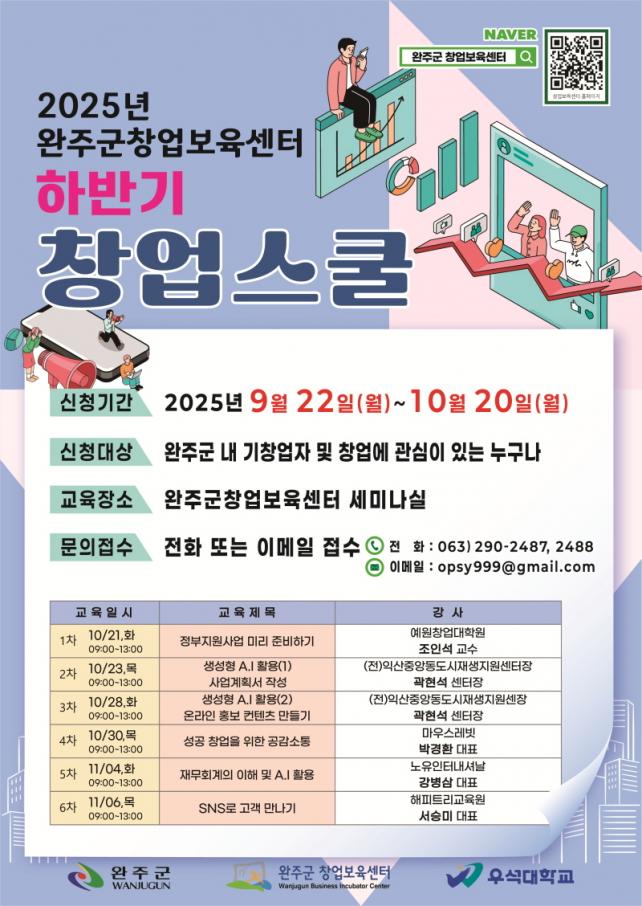 ¸ðÁý ±â°£Àº 20ÀϱîÁöÀ̸ç, ¿ÏÁÖ±º â¾÷º¸À°¼¾ÅÍ¿¡ ÀüÈ ¶Ç´Â À̸ÞÀÏÀ» ÅëÇØ ½ÅûÀÌ °¡´ÉÇÏ´Ù. ÀÚ¼¼ÇÑ ³»¿ëÀº ¿ÏÁÖ±º â¾÷º¸À°¼¾ÅÍ È¨ÆäÀÌÁö(https://wj-changup.wanju.go.kr) ¶Ç´Â ¿ÏÁÖ±º â¾÷º¸À°¼¾ÅÍ(063-290-2487~8) ÀüÈ ¹®ÀǸ¦ ÅëÇØ È®ÀÎÇÒ ¼ö ÀÖ´Ù.