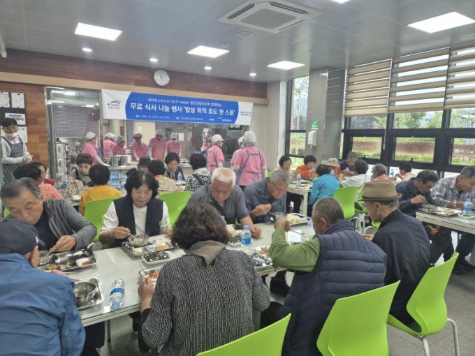 ÀÌ ³¯ ½Ç½ÃµÈ ¹«·á ½Ä»ç ³ª´® Çà»ç´Â K-water ¼¶Áø°´ïÁö»ç°¡ ±Ý4,000,000¿øÀ» ÈÄ¿øÇÏ¿© ÁøÇàµÇ¾úÀ¸¸ç, ÀÌ¿ëÀÚ ¾î¸£½Å 250¿©¸íÀ» ´ë»óÀ¸·Î ³ëÀÎÀÇ ³¯ ±â³ä ¹«·á Ư½ÄÀ» Á¦°øÇÏ¿´´Ù.