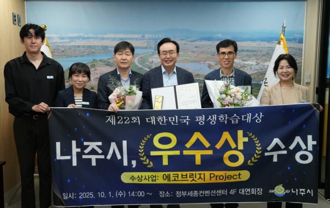 À±º´Å ³ªÁÖ½ÃÀåÀº ¡°À̹ø ¼ö»óÀº Æò»ýÇнÀÀ» ÅëÇØ Áö¼Ó °¡´ÉÇÑ Áö¿ª ¹ßÀüÀ» ¸¸µé¾î°¡´Â ³ªÁֽùΠ¸ðµÎÀÇ ¼º°ú¡±¶ó¸ç ¡°Æò»ýÇнÀ ±â¹ÝÀÇ ÀÚ¿ø¼øÈ¯, ȯ°æ±³À°À» ´õ¿í È®´ëÇØ ³ªÁÖ°¡ ģȯ°æ ÇнÀµµ½Ã·Î ÀÚ¸®¸Å±èÇÒ ¼ö ÀÖµµ·Ï ÃÖ¼±À» ´ÙÇϰڴ١±°í ¸»Çß´Ù.
