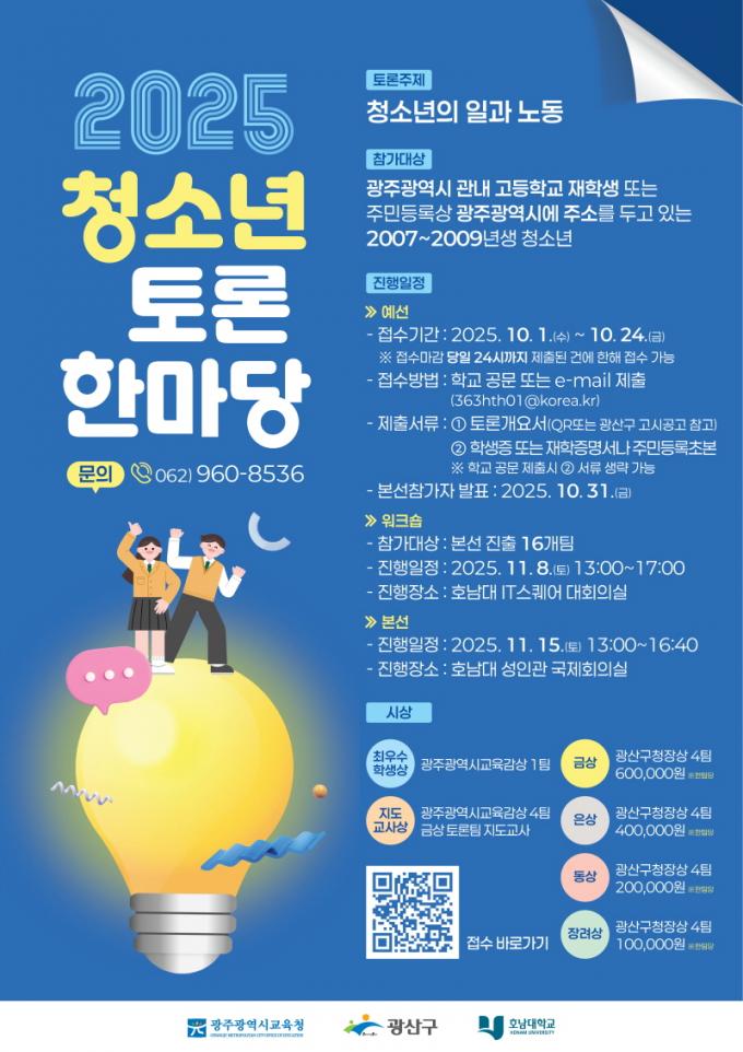 û¼Ò³â Åä·ÐÇѸ¶´çÀº È£³²´ëÇб³, ±¤ÁÖ±¤¿ª½Ã±³À°Ã»°ú ÇÔ²² °øµ¿ ÁÖ°üÇÏ´Â Çà»ç·Î, û¼Ò³âÀÇ Àϰú ³ëµ¿À» ÁÖÁ¦·Î ÇÑ´Ù. Âü¿© ´ë»óÀº ±¤ÁÖ±¤¿ª½Ã Áö¿ª ³» °íµîÇб³ ÀçÇлý ¶Ç´Â Áֹεî·Ï»ó ±¤ÁÖ±¤¿ª½Ã¿¡ ÁÖ¼Ò¸¦ µÎ°í ÀÖ´Â 2007¡2009³â»ý û¼Ò³âÀ¸·Î, 2ÀÎ 1ÆÀÀ¸·Î Âü°¡ÇÒ ¼ö ÀÖ´Ù.