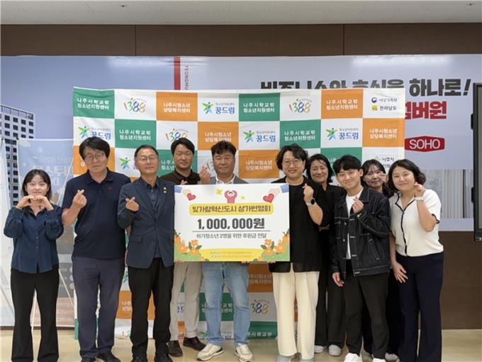 [È£³²µµ¹Î½Å¹® = ÀÓÀ±Áø ±âÀÚ] ºû°¡¶÷Çõ½Åµµ½Ã »ó°¡¹ø¿µÈ¸°¡ Áö¿ª»çȸ ³» À§±âû¼Ò³âÀ» À§ÇÑ µû¶æÇÑ ³ª´®¿¡ ¾ÕÀå¼¹´Ù. »ó°¡¹ø¿µÈ¸´Â Áö³­ 10¿ù 1ÀÏ, ³ªÁÖ½Ãû¼Ò³â»ó´ãº¹Áö¼¾ÅÍ³ªÁÖ½ÃÇб³¹Ûû¼Ò³âÁö¿ø¼¾ÅÍ¿ÍÀÇ ¸¸³²À» ÅëÇØ À§±âû¼Ò³â 2¸íÀ» À§ÇÑ ÈÄ¿ø±Ý 1,000,000¿øÀ» Àü´ÞÇß´Ù.