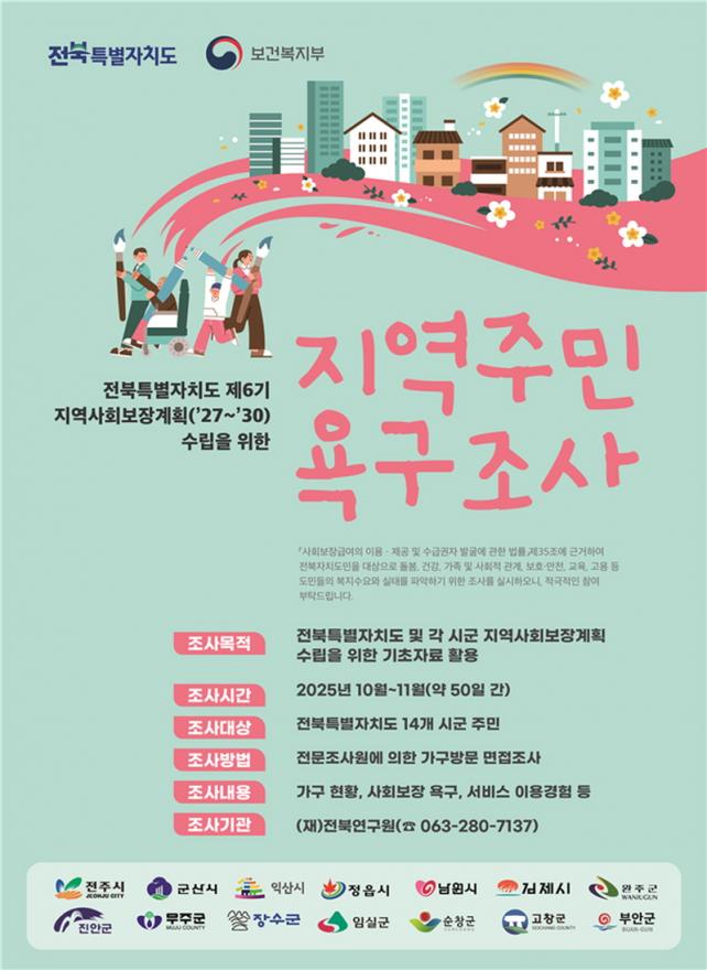 Á¶»ç °á°ú´Â ³»³â 2¿ù±îÁö ºÐ¼®¡¤º¸°í¼­·Î Á¤¸®ÇØ °¢ ½Ã¡¤±º¿¡ Àü´ÞµÉ ¿¹Á¤ÀÌ´Ù. ÀüºÏµµ¿Í ½Ã¡¤±ºÀº À̸¦ Åä´ë·Î 2027³âºÎÅÍ ½ÃÇàµÉ Á¦6±â Áö¿ª»çȸº¸Àå°èȹ¿¡ ¹Ý¿µ, Áö¿ª Ư¼º¿¡ ¸Â´Â ¸ÂÃãÇü º¹ÁöÁ¤Ã¥À» ¼ö¸³ÇÏ°í ½ÇÈ¿¼º ÀÖ´Â »çȸº¸Àåü°è¸¦ ±¸ÃàÇÒ ¹æÄ§ÀÌ´Ù.