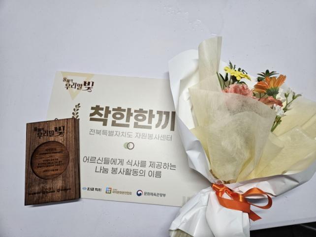 ÀüºÏƯº°ÀÚÄ¡µµÀÚ¿øºÀ»ç¼¾ÅÍ °í¿µÈ£ ÀÌ»çÀåÀº ¡°Çѱ۳¯¿¡ ÀÌ·± ¶æ ±íÀº »óÀ» ¹Þ°Ô µÇ¾î ¸Å¿ì ¿µ±¤ÀÌ´Ù¡±¸ç, ¾ÕÀ¸·Îµµ ¡®ÇÔ²² ÀüºÏ, ÂøÇÑ ÇÑ ³¢¡¯Ã³·³ µû¶æÇÑ ¿ì¸®¸»°ú ³ª´®ÀÌ »ì¾ÆÀÖ´Â ÀÚ¿øºÀ»ç ¹®È­¸¦ È®»êÇØ ³ª°¡°Ú´Ù°í ¹àÇû´Ù.